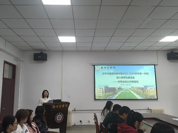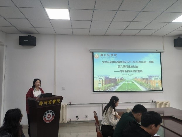 本次师生座谈活动围绕着如何快速适应大学生活,对专业认识和发展、对大学四年的规划和丰富课余生活等方面进行了讨论交流。文学教研室于巧燕老师发表了“携手共进,筑梦远航”的演讲,于老师首先对汉语言文学和汉语国际教育两个专业情况做了比较全面的介绍,并结合专业情况给出相应的学习建议;其次,于老师对汉语言文学和汉语国际教育考取资格证书做了介绍;最后,对同学们大学四年的学习提出了一些要求,指出良好的课堂效果源于师生的共同参与,要求同学们有目的的开展学习计划,让自己的大学四年不留遗憾。