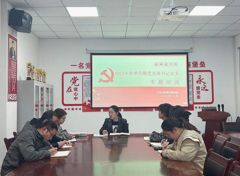 为进一步推进我院党建各项工作落实,增强基层党组织的创造力、凝聚力、向心力,11月6日下午15时,文传学院于自力楼101会议室召开2023年秋季学期党支部书记业务专题培训会,党委书记贾蓓及各学生党支部书记共同参加培训。