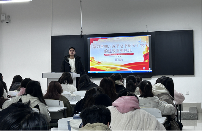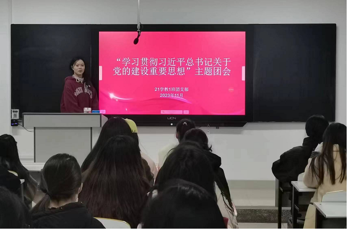 团会伊始,由各班团支书带领同学们学习习近平总书记关于党的建设的重要思想,加深同学们对这一重要思想的理解。同时通过视频引导、图片讲解、现场互动等方式充分调动同学们学习的积极性,在绘声绘色的讲解中让同学们深入了解党的思想建设的重要性,帮助同学们树立理想信念,在学思践悟中切实增强思想自觉、政治自觉、行动自觉。接着,同学们就团会内容进行讨论,并发表自己的看法和感想。最后,团支书就本次主题团会做总结发言,号召大家持续学习习近平总书记关于党的建设的重要思想,把握其精髓要义,立志做有理想、敢担当、能吃苦、肯奋斗的新时代好青年,以昂扬奋进的姿态书写无愧于时代的壮丽篇章。