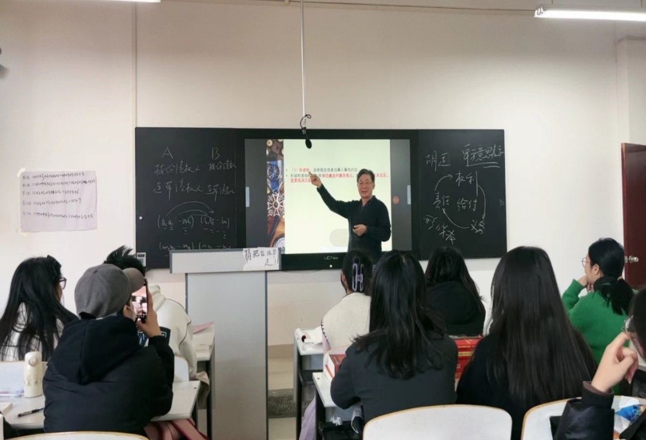 文传学院专职教师王继风教授,11月9日第3节在H214教室,为23产权1、2班讲授《民法I》课程。王教授能够流畅准确且生动地传授学科知识,在阐释《民法I》“形成权”的“单方面意思表达”时,另辟蹊径,引经据典;从“权源”角度,论证“权利、义务、责任”的关系,引用胡适的《容忍比自由更重要》及其他法学家的民法思想、观点,课程具备历史厚度、法理深度与知识的广度,突出了重点、难点。王教授与学生交流自然和谐,表现出学者应有的思想洞察力和探索新知的敏锐力,这一切使王教授的课堂充满热情与求真之美。