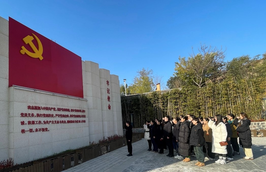为使此次活动取得良好的活动效果,教工党支部出发前对活动的整体流程、团队组成、寻访路线进行了详细的规划和部署,提前带领组织成员了解常香玉的生平经历和重要贡献,为此次活动的顺利开展做了充分准备。在常香玉红色艺术纪念馆,大家怀着无比崇敬的心情依次参观各展区认真聆听了常香玉大师辛苦奔波12年,足迹遍及3省8市艰辛学艺的艺术人生,为人民而唱、为百姓而唱的艺术成就以及义演募捐战斗机、募资修筑“香玉坝”、义演募捐建设小学、搭棚建营购粮舍粥的典型事迹。活动尾声,教工党支部全体党员同志集体重温入党誓词。