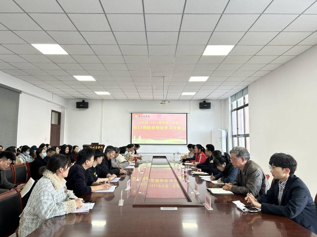 为深入学习贯彻习近平总书记重要讲话精神,筑牢公共安全意识,弘扬宪法精神。12月7日14点30分,文传学院于自力楼216会议室开展第十三周政治理论学习专题会,文传学院全体教职工共同参加,会议由党委书记贾蓓主持。