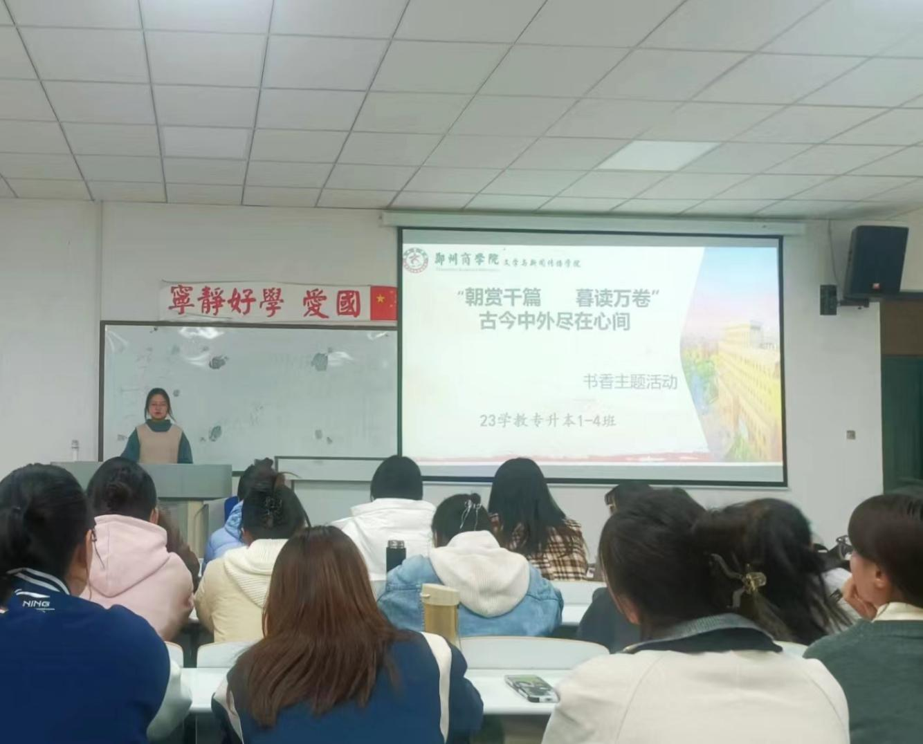 在好学先锋岗上,学生第一党支部李苗同学依托于beat365“书香校园阅读经典工程”,依据好学先锋岗位职责,在23学教专升本1-4班开展“朝赏千篇,暮读万卷,古今中外尽在心间”书香主题活动,从优秀书籍分享会到杜甫诗词鉴赏等方面开展此次活动,动员23学教专升本1-4班的学子参与其中,积极分享自己的书香故事,助力班级学生养成“爱读书、读好书、善读书”的阅读习惯,培养本专业学子积极向上的学风。