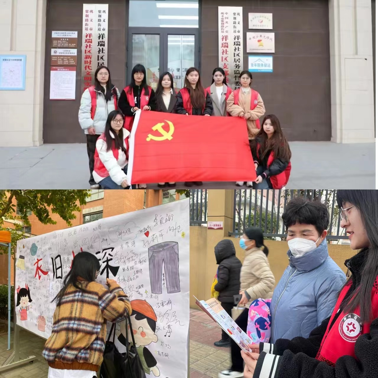在志愿服务岗上,学生第七党支部刘怡同学前往祥瑞社区新时代文明实践站开展反诈骗宣传,讲述了反诈防骗的一些经历和注意情况,以诈骗的类型、被骗原因、反诈常识等方面为切入点,向大家进行详细讲解。再到小区进行志愿服务活动,入户宣传文创知识,加深社区居民对反诈骗的认识和运用,保护自身和家庭的人身、财产安全。并在道路两侧向来往的居民发放反诈骗宣传单,提醒他们提高防范意识。并且参加学院举办的爱心捐衣活动,将自己不经常穿戴的衣物整理出来清洗干净,捐给山区有需要的孩子们。