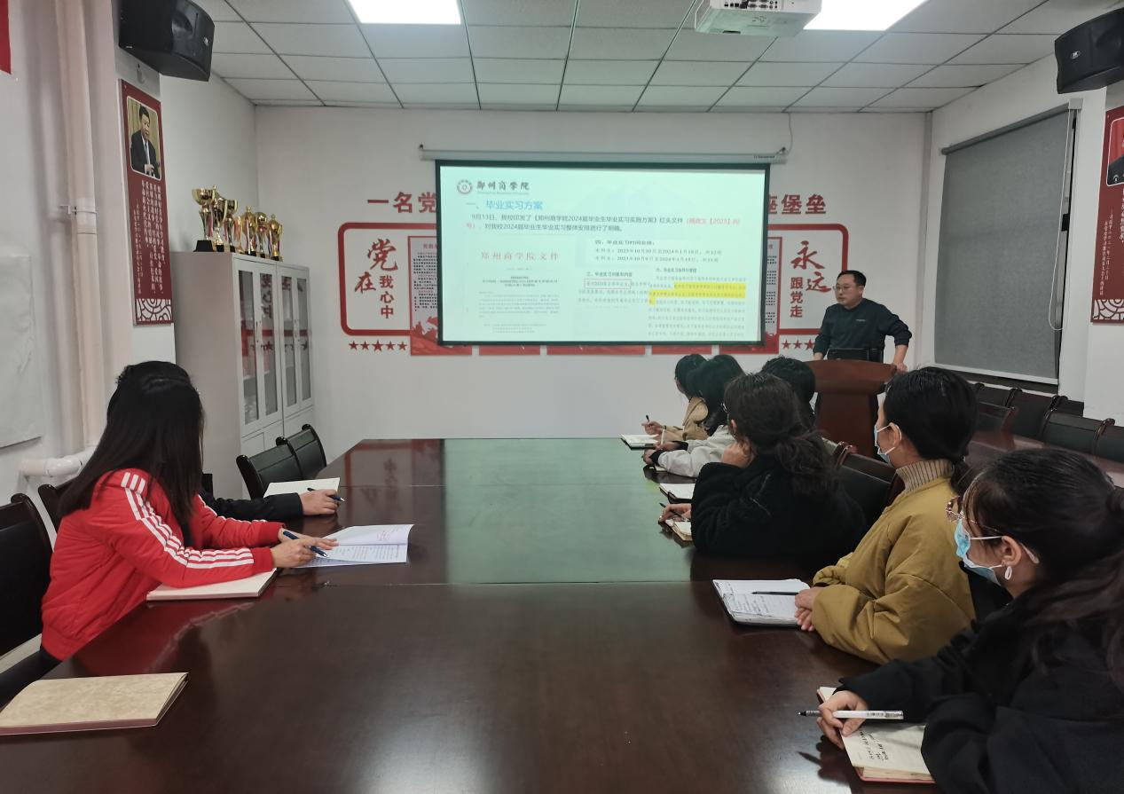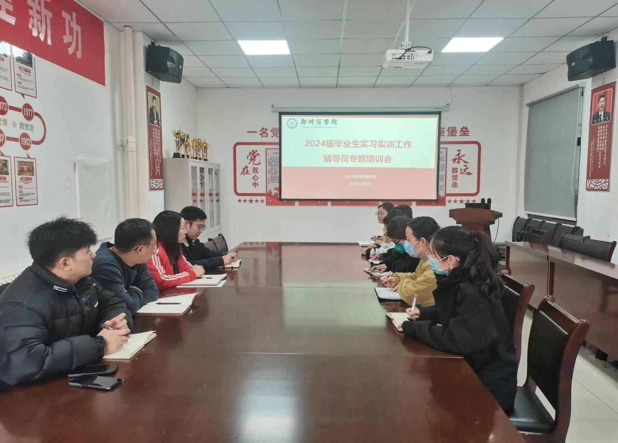 12月7日上午,我院邀请就业处市场科科长李闯及许晨轩老师来我院作2024届毕业生实习实训工作辅导员专题培训,我院党委书记贾蓓、团委书记王凯及全体毕业班辅导员参会。