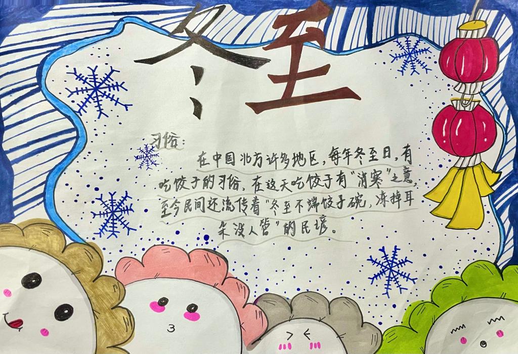 支部学生党员们动手实践制作“冬至”手抄报,学生党员热情高涨,纷纷下笔如有神,一笔一划间,描绘出冬至节气氛围。