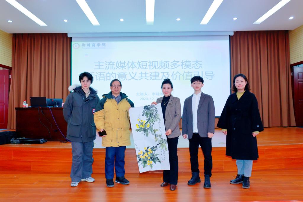 为进一步开拓师生学术视野,促进专业内涵式发展,引导学生积极参与学科竞赛,提升人才培养质量,12月28日,我院特邀中原工学院新闻与传播学院副院长李建波博士莅校讲座,讲授主题为“主流媒体短视频多模态话语的意义共建及价值引导”,文传学院院长王松、副院长石璐及新传专业师生代表参加讲座。