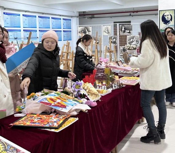 在作品展览期间,文传学院老师、同学为参观的同学讲解作品设计理念,参观者感叹于同学们的集思广益、心灵手巧,制作出一件件栩栩如生的工艺品,感叹中华优秀传统文化的博大精深、源远流长。