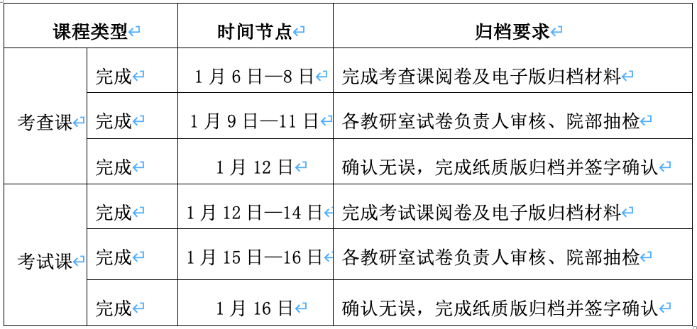 期末试卷阅卷及归档工作具体安排
