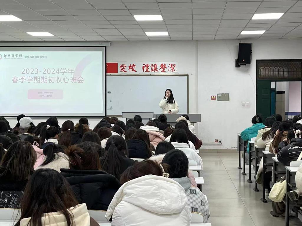 2月26日,文传学院召开新学期收心班会。会上,辅导员教育引导学生尽快调整状态从寒假生活过渡到紧张忙碌的学校生活中。同时,强化学生遵纪守法、行为文明教育,及时传达学校管理规定;开展安全稳定教育,提醒学生注意人身财产安全,谨防电信诈骗。