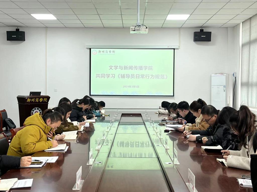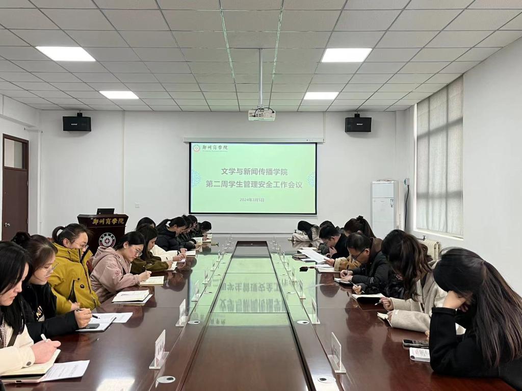 3月5日,文传学院召开第二周学生管理安全工作会议,文传学院党委书记贾蓓、团委书记王凯及全体辅导员参会。
