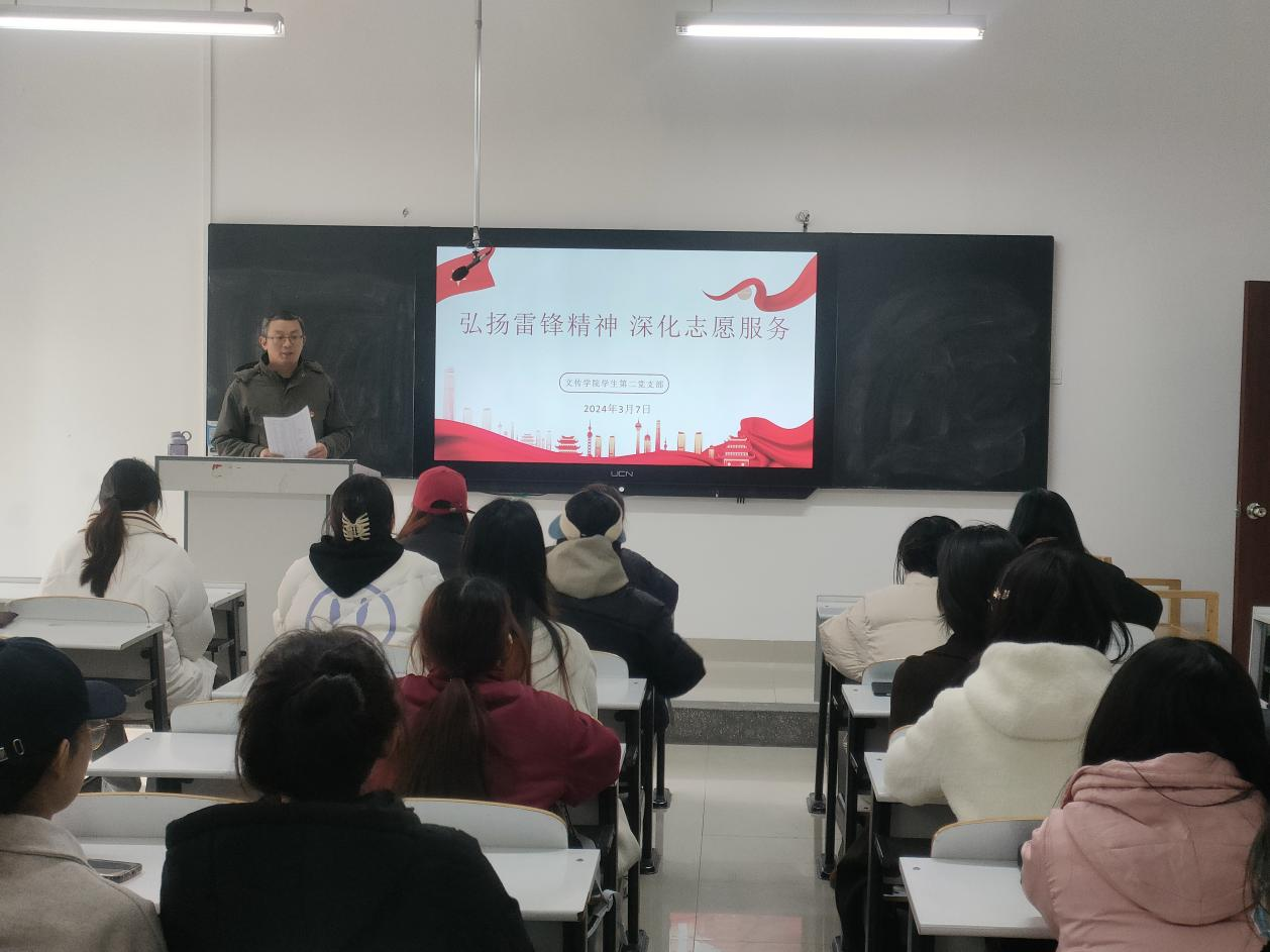 为深入学习贯彻落实党的二十大精神,传承和弘扬雷锋精神和志愿服务精神,在第61个“学雷锋”纪念日到来之际,3月7日,文传学院学生第二党支部开展“传承雷锋精神,深化志愿服务”主题党日活动。本次会议由党支部书记牛道恒老师主持,党支部全体学生党员参加。