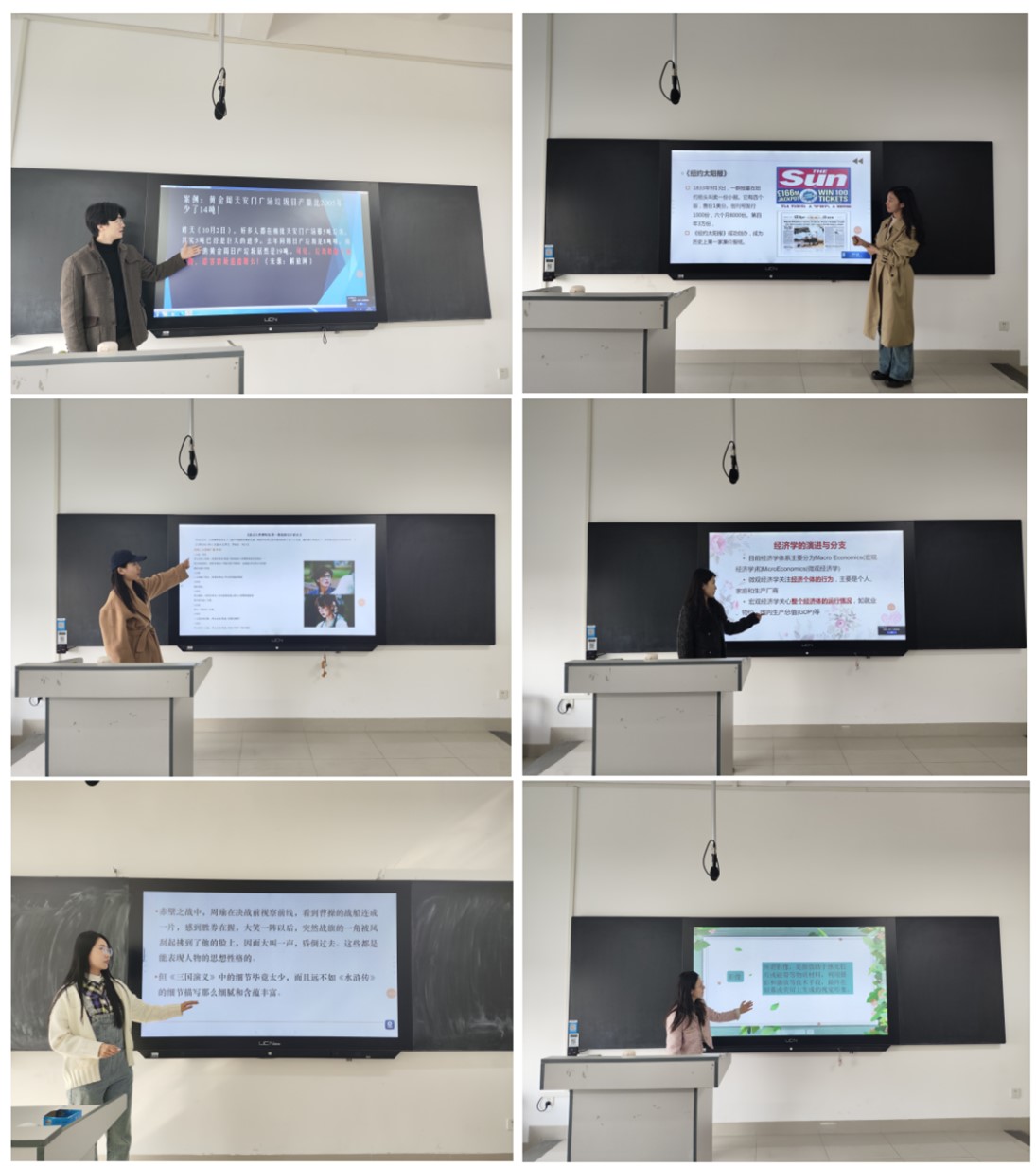 活动中,宋秀老师对她所教授的课程《短视频剧本创作》,提出了理论、视频、剧本分析相结合的模式,将理论知识融入实践当中,丰富理论知识的内涵,拓宽实践应用场景,为学生理解并运用相关理论知识提供了更加清晰、细致的使用方法。陈静老师在《宋代文学——刘永词的新变》的授课过程中,不拘泥于“刘永”个人的诗词创作特点,旁征博引,联系同时代同时期的其他诗人的特点,以北宋时期的社会景象为背景,细致全面地分析了刘永在诗词创作道路上的突破和创新。丁宇薇老师在讲授《媒介经营与管理》的引论时,细数新媒体时代和传统媒体时代中媒介的更替,并进行对照分析,以实际案例映照章节中所提到的“科学技术是媒介发展的第一推动力”。