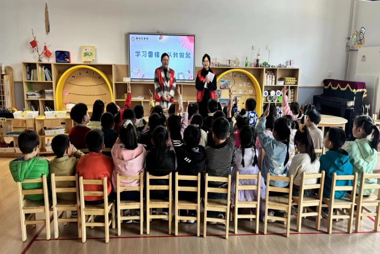 为深入学习贯彻党的二十大精神,同时激励和引导学生党员树立服务意识,发挥模范带头作用,文传学院学生第三党支部和第五党支部于3月27日在巩义市学院路幼儿园开展“三月春风处处暖,雷锋精神代代传”雷锋精神主题故事宣讲活动。