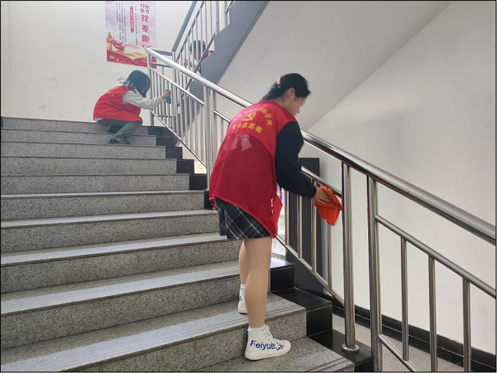 参加活动的学生党员干劲十足,充分发挥吃苦耐劳、乐于奉献的精神,齐心合力、配合默契,将我院所属的教学楼公区、教室、办公室等进行打扫,全面排查安全隐患,营造安全舒适卫生的学习办公环境,保障师生的健康安全。