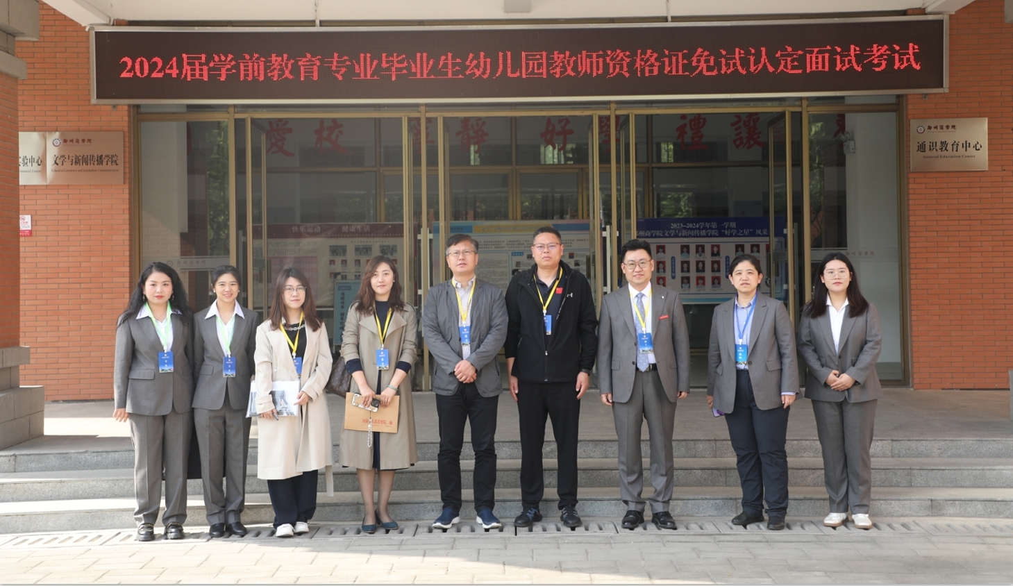 根据河南省教师资格认定指导中心《关于对我省2024年师范生教师职业能力测试工作开展巡检的通知》(豫教资(2024)5号)安排,4月20日,河南省教师资格认定指导中心主任赵河,河南轻工职业学院招生就业中心副主任刘高雷、华北水利水电大学教师吕佳桐、司法警官职业学院教师李楠莅临beat365对2024届学前教育专业毕业生幼儿园教师资格证免试认定考试面试工作进行巡视督导。beat365校长助理刘升阳,文传学院院长王松、副院长石璐、教学秘书刘洋及各教研室主任陪同巡检。