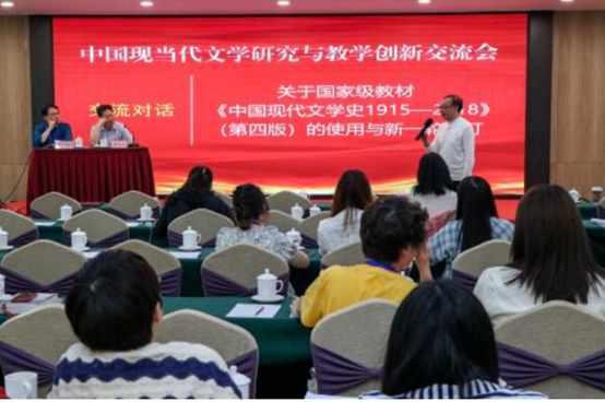 在国家级教材《中国现代文学史1915—2018》(第四版)的使用与新一轮修订交流对话环节,教材主编朱栋霖教授,教材编者代表上海交通大学张全之教授、西北大学袁少冲教授就教材的使用与新一轮修订和参会代表面对面对话交流,为教材更好地适应新时代中国现当代文学课程的教学改革创新充分交流意见,为推动教材的持续创新发展共同出谋划策、深入研讨。