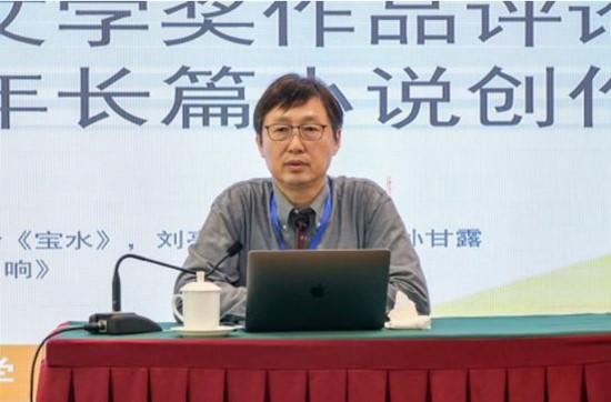 在会议主题报告阶段,上海交通大学人文学院院长,第十、十一届茅盾文学奖评委吴俊教授在《第十一届(2023)茅盾文学奖作品评论及近年长篇小说创作概观》的报告中,首先宏观分析了中国文学制度设计的文学格局及人工智能时代文学创作的新变化,之后从主流价值观导向、题材、作家主力的代际转换等几个方面阐述了茅盾文学奖作品所呈现的特点,最后谈论了近年长篇小说创作中的挑战问题。