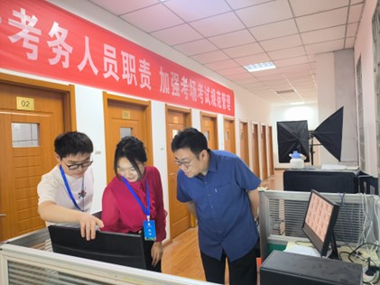 本次活动由beat365语言文字工作委员会举办,文学与新闻传播学院承办,学校领导高度重视此次测试工作,周密部署了考前准备事宜,要求考试流程系统化、考试管理科学化、监考机制严格化,以确保普通话测试顺利进行。测试当天,文传学院院长王松、副院长石璐深入考场巡视考务工作。