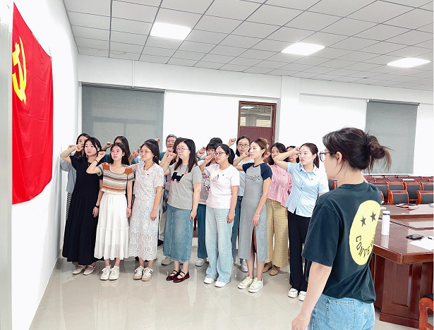 随后,在党委组织委员程斯佳老师的带领下,全体教师党员举起右拳,面向党旗重温入党誓词。大家用高昂、奋进而又庄严的誓词表达了对党的忠诚和热爱。铿锵有力的誓言,唤醒党员入党初心,进一步强化党员的身份意识和责任意识,坚定自己的理想信念。