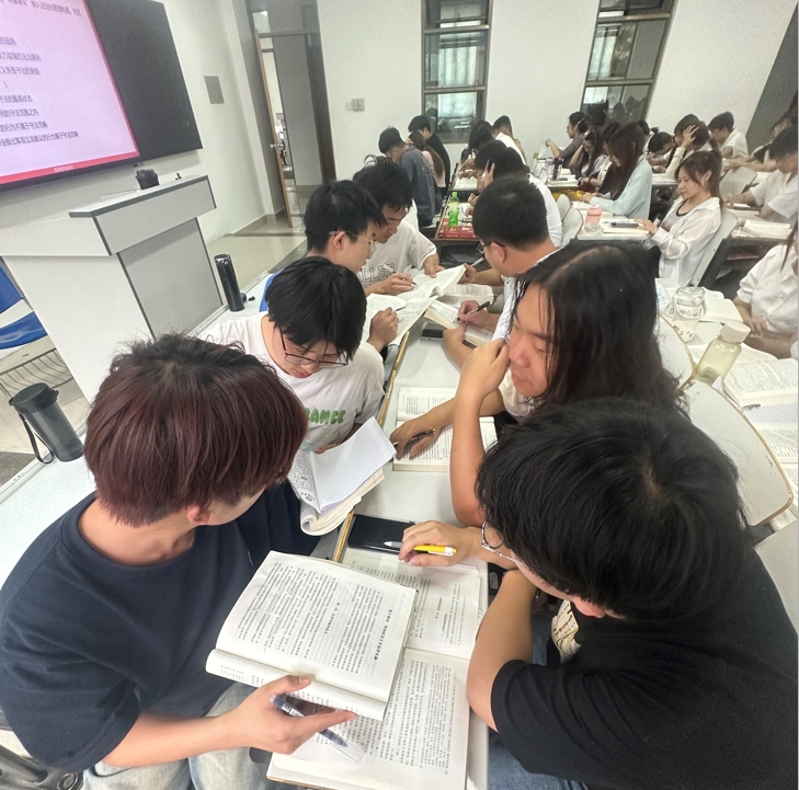 课前老师设计有关法律实施方面的案例或材料,并提出相应的几个问题,将全班同学分成若干个学习小组,然后由各学习小组自己协商怎样分工合作,怎样查资料和准备材料,怎样组织问题答案。分组学习就是每个学习小组自己进行协商分工,分配所回答的问题和汇报的内容,查询图书,报刊、互联网及中国期刊网等资源,充分研究,形成学习意见或答案,以供课堂讨论之用。分组学习的的准备材料阶段可以增进学习小组成员之间的经验交流,学习交流和情感交流,并能通过分工合作,培养学生的集体荣誉感和团队精神