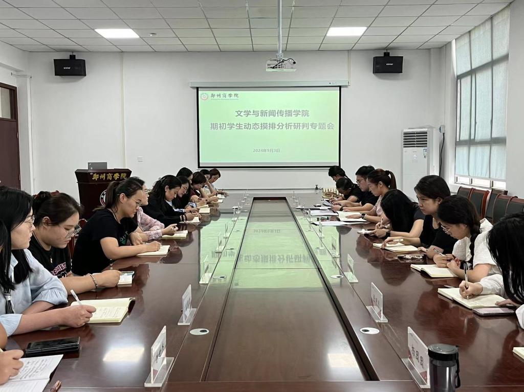 为全面准确地了解学生的思想动态,有针对性地做好学生的思想政治工作。9月3日,文传学院召开期初学生动态摸排分析研判专题会,文传学院党委书记贾蓓、团委书记王凯及全体辅导员老师参会。