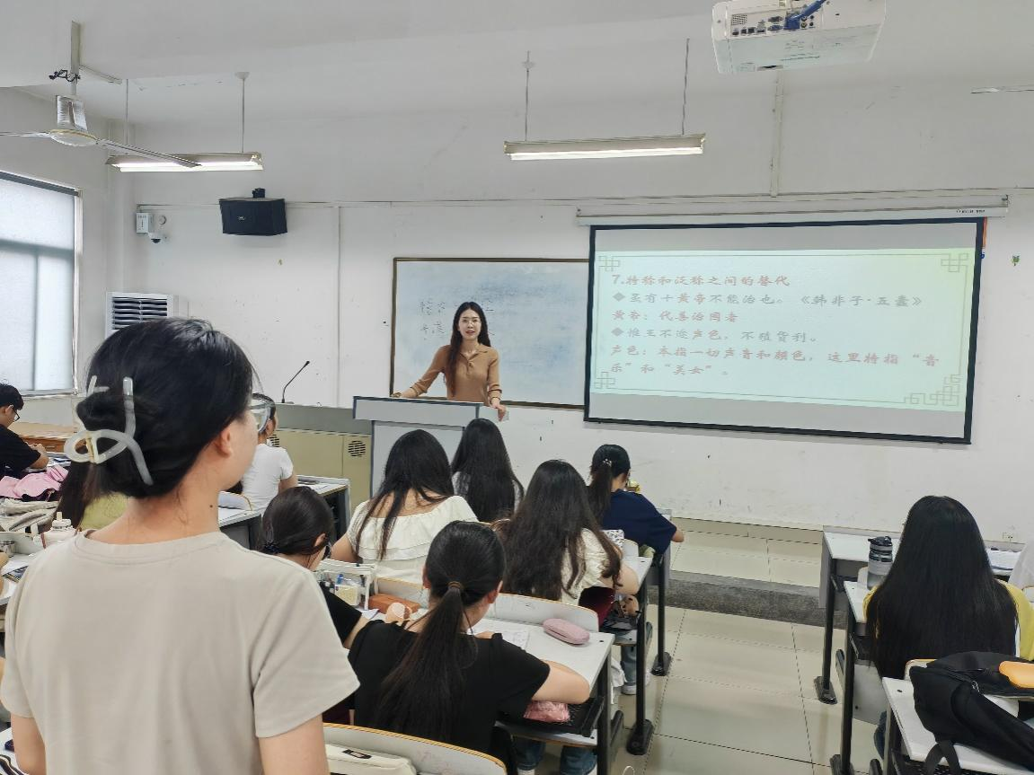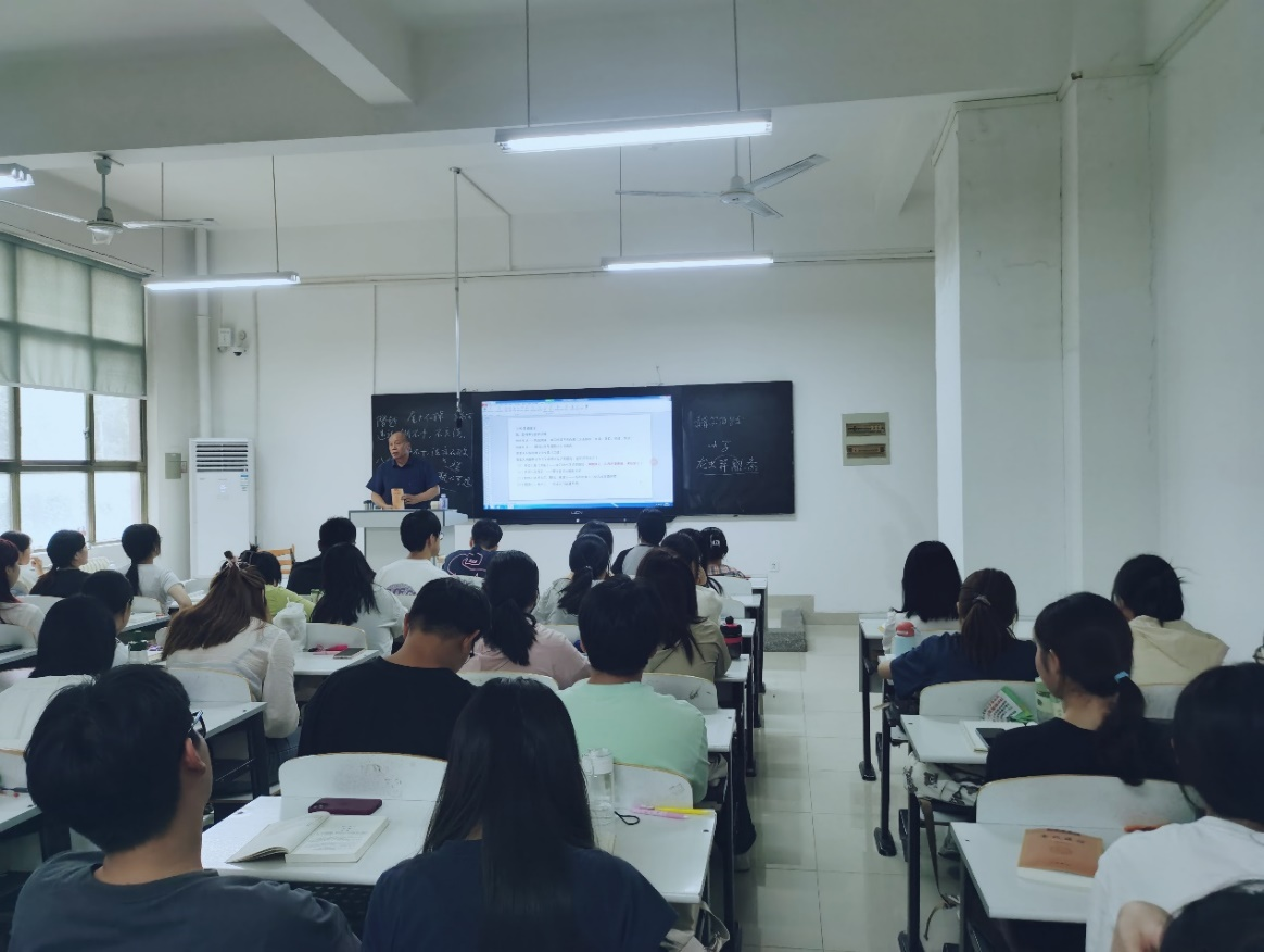 张明海教授所教的《古代汉语》课程,在教学过程中,授课极具吸引力,板书层次鲜明,规范工整,展现出老教授授课的高水平能力。张永青老师的《文字学》,与学生互动频繁,讲课逻辑清晰,PPT制作详美,板书规范,展现出文学教研室老教授备课严谨的态度。