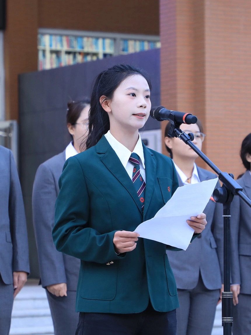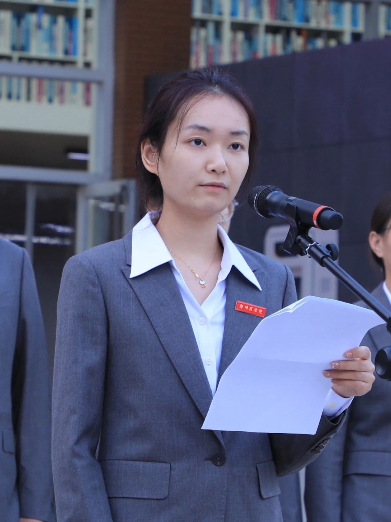 我院学生代表23产权1班段洁琼作国旗下的演讲《守法正言行,青年当有为》。她认为,宪法乃国之重器,青年学子应把学习宪法视作自己的责任与义务,积极学习宪法,让宪法走进生活的每一个角落。以习近平法治思想为引领,学宪法、讲宪法,为建设法治国家、实现中国梦贡献力量,展现青年的担当作为。