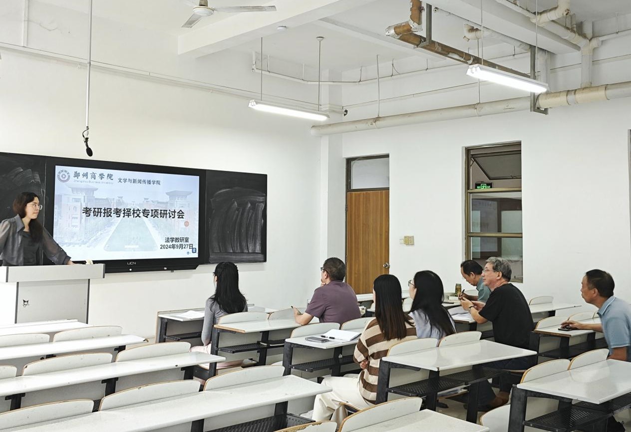 文学教研室总结了往年的报考数据与实际录取情况,剖析了本届各专业报考情况,包括报考人数、热门院校及专业分布、历年录取分数线等信息。认为在报考过程中,学生应该充分考虑个人实际情况,制定合理的报考策略。同时,老师们提出加强交流与合作,共同构建一个信息共享、经验互鉴的考研备考平台,为学生的成功报考提供更加有力的支持。