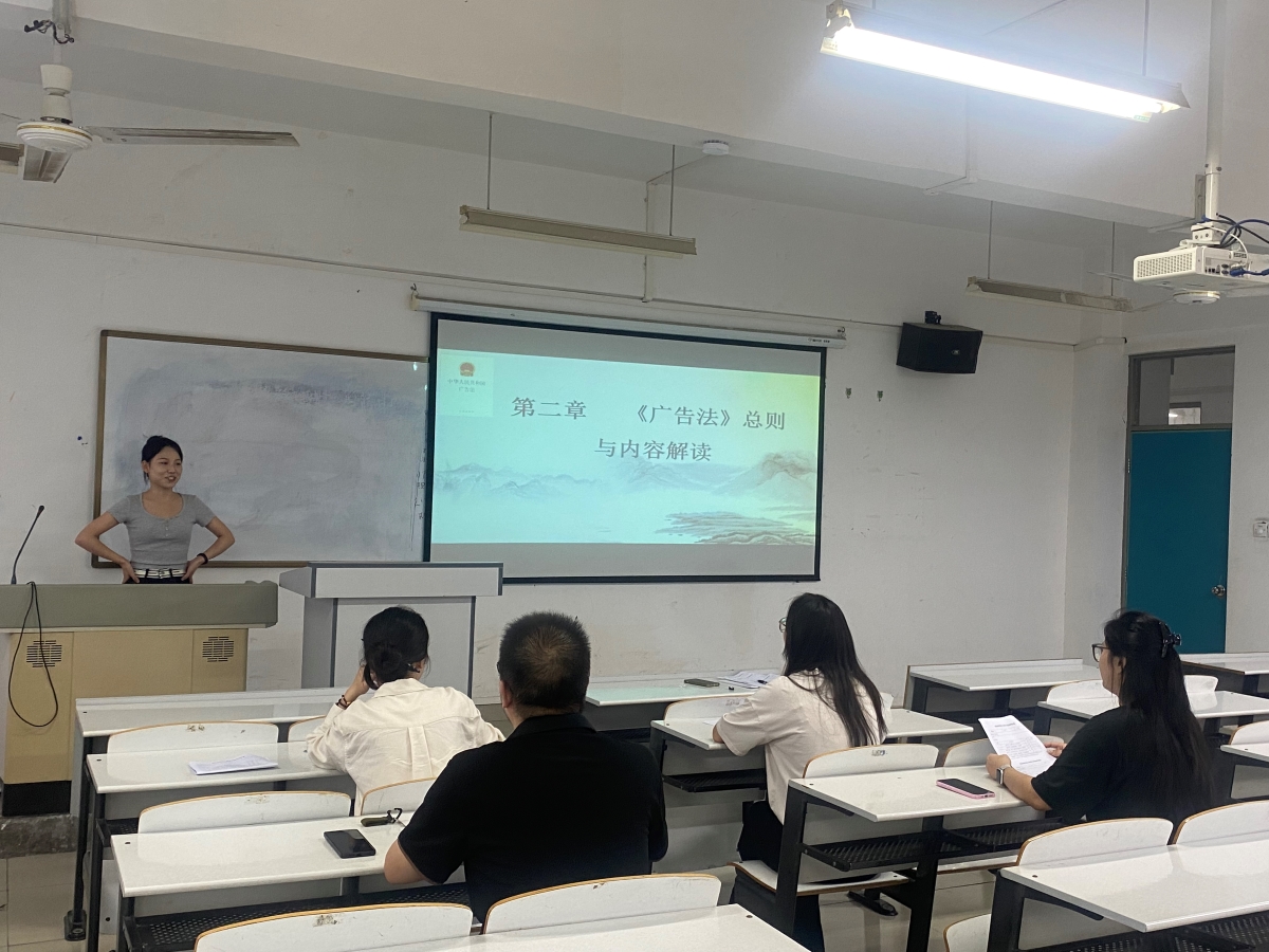 徐甜甜老师在讲授《广告法规与广告伦理》第二章第一节“总则解读”时,精心准备了授课内容,她以引人入胜的案例导入,配合生动的PPT与深入浅出的条文解析,促进学生积极参与讨论,确保他们不仅理解法规条文,更能领悟其背后的立法精神与社会意义。