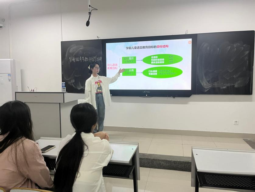 付培鸽老师就《学前儿童语言教育与活动指导》的第一章“幼儿语言教育的目标与内容”进行了说课。她深入阐述了幼儿语言教育目标的制定依据,强调从幼儿身心发展规律以及社会需求等多方面综合考量。