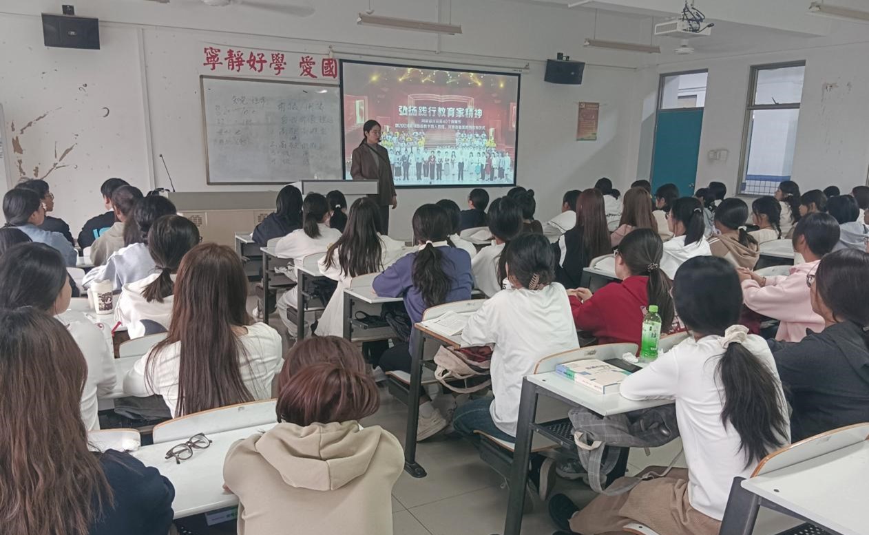2024年10月18日,我院胡金莹老师和王晴老师组织2024级学前教育专业师范生观看了《弘扬践行教育家精神》河南省庆祝第40个教师节——暨2024年河南省教书育人楷模、河南省最美教师发布仪式,并展开了相关的主题活动。此次活动是学前教育专业师范生师德师风活动周系列活动之一,旨在帮助师范生加强师德师风建设,在榜样的激励下对学习、对教师产生更为深刻的认识。