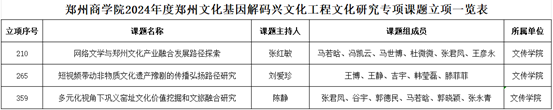 根据《关于2024年度郑州文化基因解码兴文化工程文化研究专项课题立项的通知》,文学与新闻传播学院3项2024年度郑州文化基因解码兴文化工程文化研究专项课题获批立项。立项编号为XWHYJ2024+立项序号。