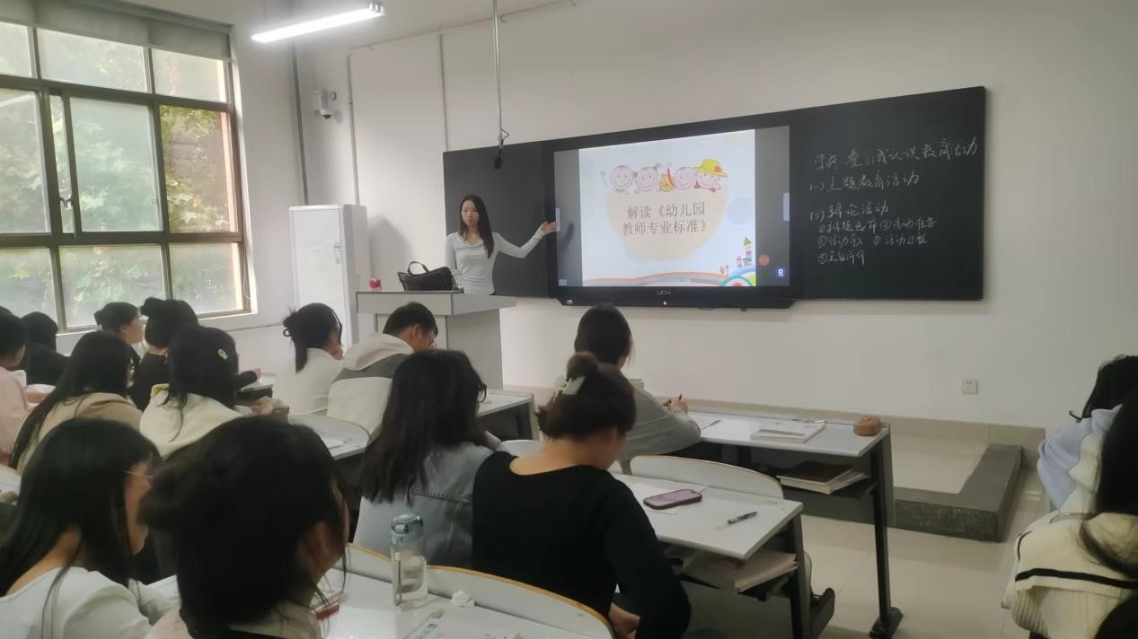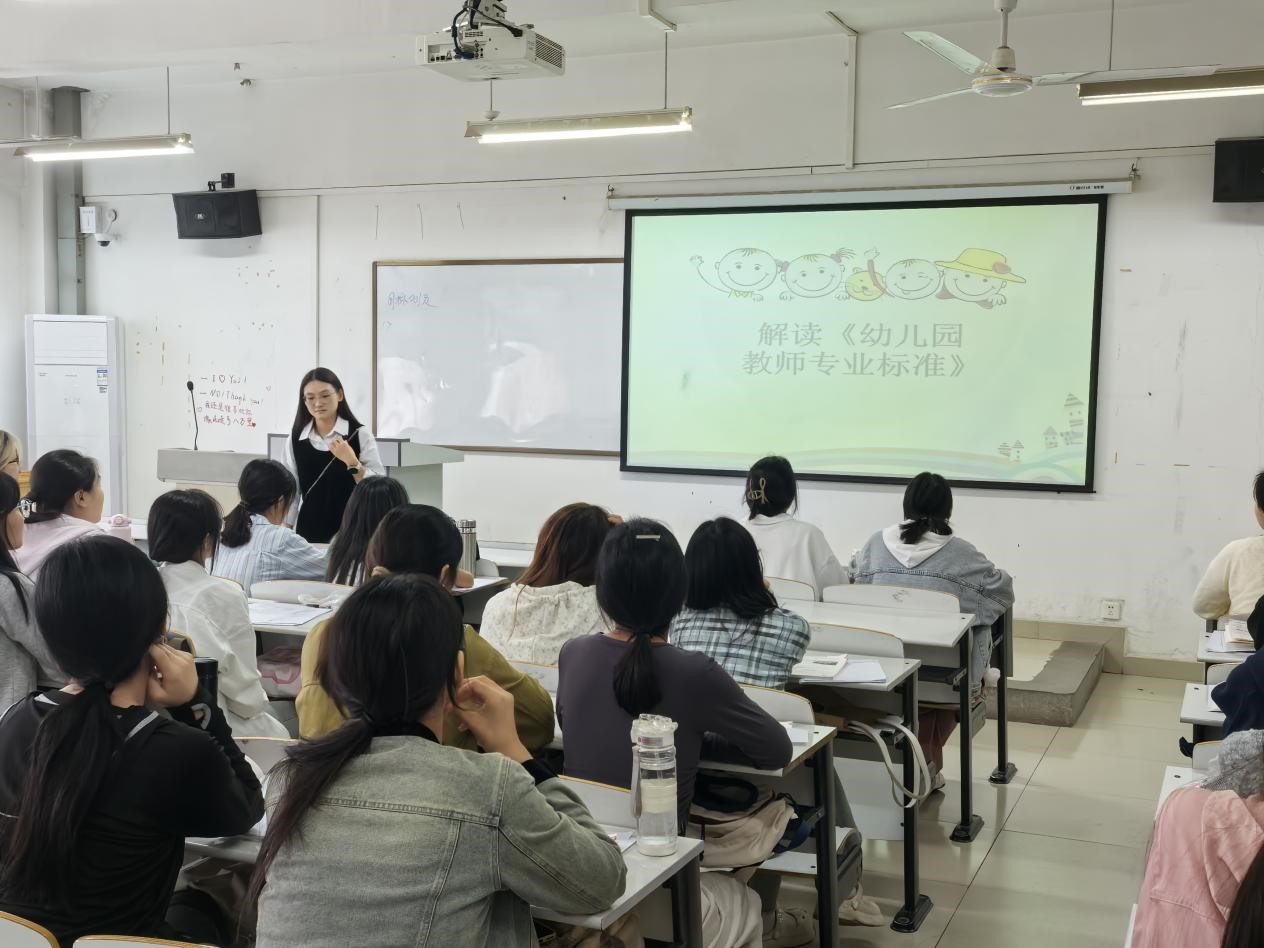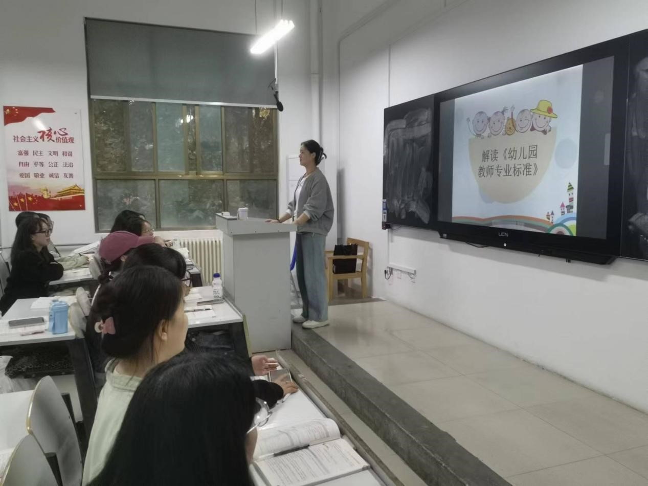 为加强师德师风建设,确保教师队伍的高质量发展,并保障幼儿的健康成长,10月24日,教育学教研室郑梦瑶、李琳梦、吴琪、韩莹磊等教师组织学前教育专业师范生进行《幼儿园教师专业标准》(以下简称《标准》)解读活动,同时也对学生进行了礼仪教育。此次活动旨在通过深入解读《标准》的基本理念、基本内容和实施建议,帮助未来教师更好地理解自身的专业职责,提升职业道德素养,从而推动学前教育事业的发展。