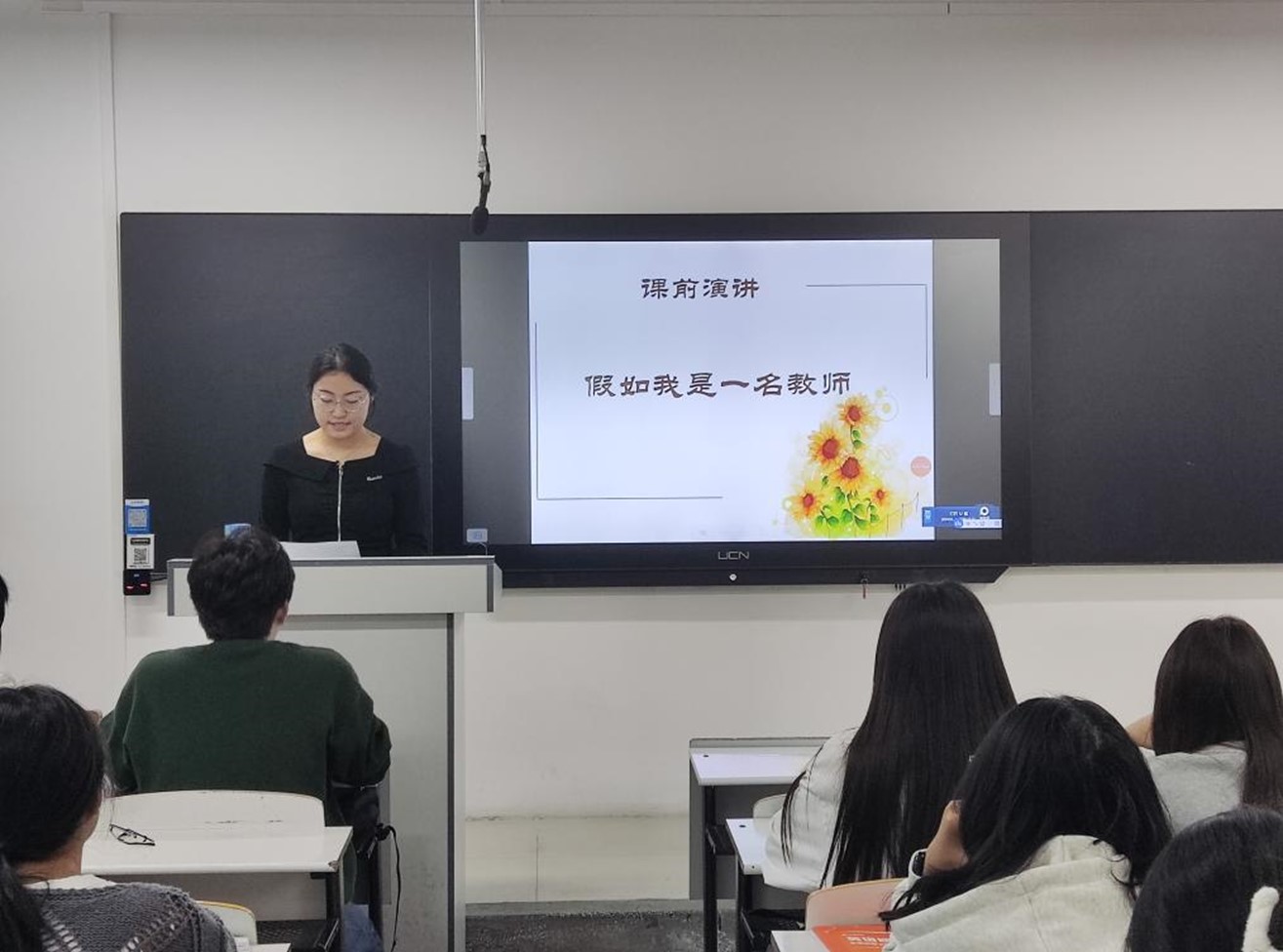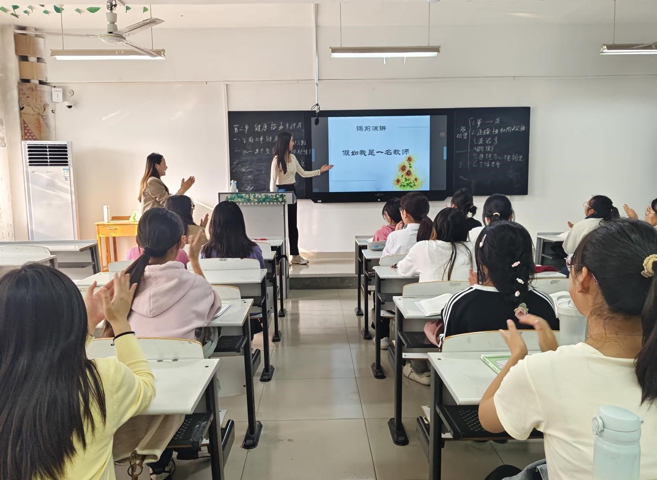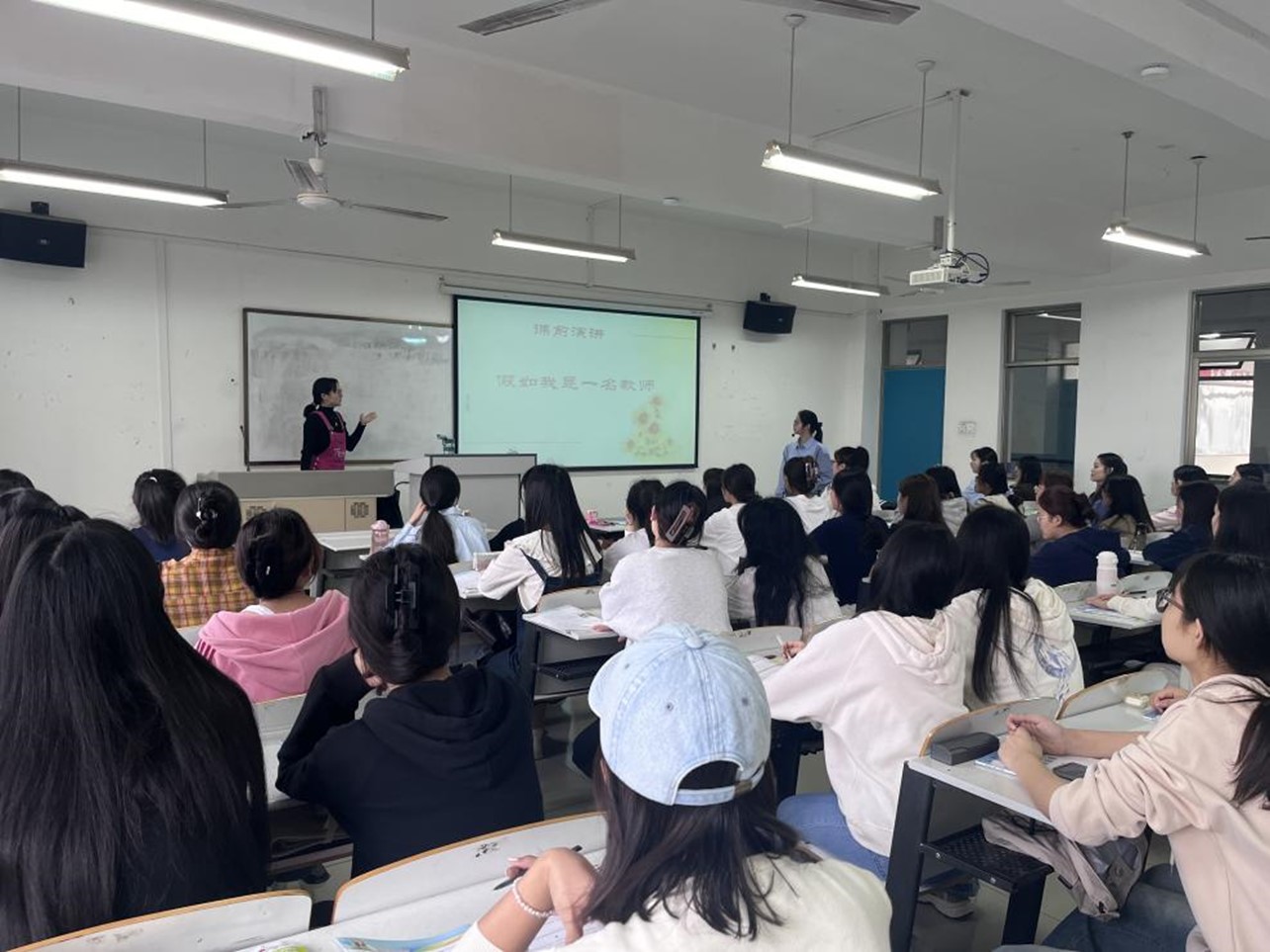 活动期间,学生们热情高涨,纷纷走上讲台,分享自己对教师这个职业的理解和憧憬。有的学生谈到,假如自己是一名教师,会用耐心和爱心去教导每一个学生,让他们在知识的海洋中茁壮成长;有的学生表示,会像自己的老师一样,以身作则,成为学生们的榜样。有的谈到会像蜡烛一样燃烧自己,照亮学生前行的道路;有的表示要以耐心和爱心,关注每一个学生的成长。王竹美等四位老师认真聆听学生的演讲,不时露出欣慰的笑容。