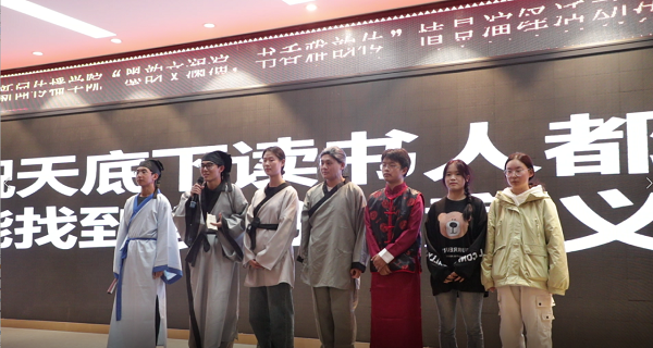 五号团队24汉本4班的同学们选择《儒林外史》中《范进中举》这一故事,生动演绎了范进为科举考试喜极而疯的形象,故事结尾告诉同学们“人生是旷野,祝愿天底下的读书人都能找到读书的意义”。