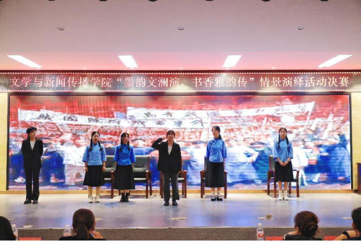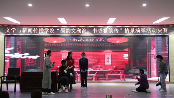 活动通知发布后,我院学生积极报名、热情参与,经过初赛、复赛的激烈选拔,共有6支团队进入决赛。决赛现场,各参赛队伍以饱满的热情和精湛的演技,将文学作品中的经典片段进行了生动再现,通过精心设计的场景布置、服装道具以及富有感染力的表演,将观众带入了一个个充满文学魅力的世界。