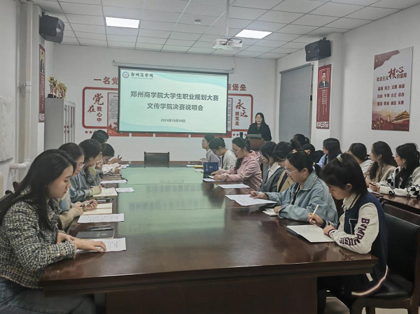 为了给学生普及职业规划知识,使学生科学合理规划职业生涯,做好我院职业规划大赛决赛备赛工作。10月30日下午,文传学院在自力楼101党团活动室召开大学生职业规划大赛决赛赛前说明会。我院职业规划大赛联络员苗雅洁老师、全体2024级辅导员以及入围决赛的12名选手参会,会议由苗雅洁老师主持。