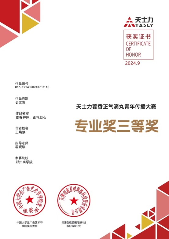 值得一提的是,我院翟晓瑞、邢振毅、曹萌三位教师也在此次大赛中荣获优秀指导教师称号。他们凭借丰富的教学经验和深厚的专业功底,为学生们提供了全方位的指导和支持,帮助他们在大赛中取得了优异的成绩。这一荣誉的获得,不仅是对他们辛勤付出的肯定,更是对我院广告教育师资力量的充分认可。