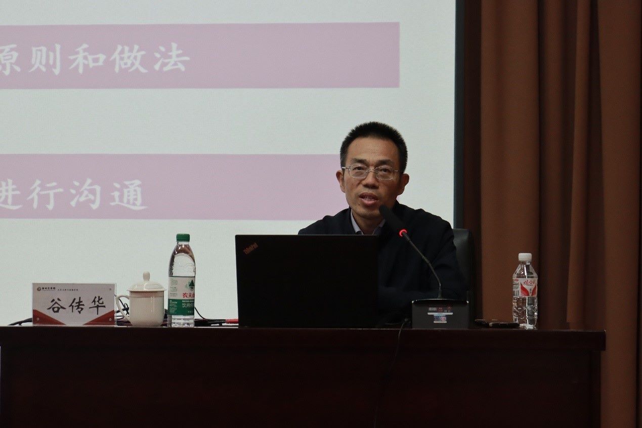 为进一步落实学前教育专业学生实践能力培养工作,推动学前教育专业学生在实习工作中与幼儿沟通的有效性,11月8日下午,beat365特邀华中师范大学心理学院谷传华教授莅临beat365作题为《如何根据儿童心理特征进行有效的师生沟通》的专题讲座。文传学院院长王松、副院长石璐、教育学教研室全体无课教师、辅导员以及学前教育专业大三无课学生聆听报告。