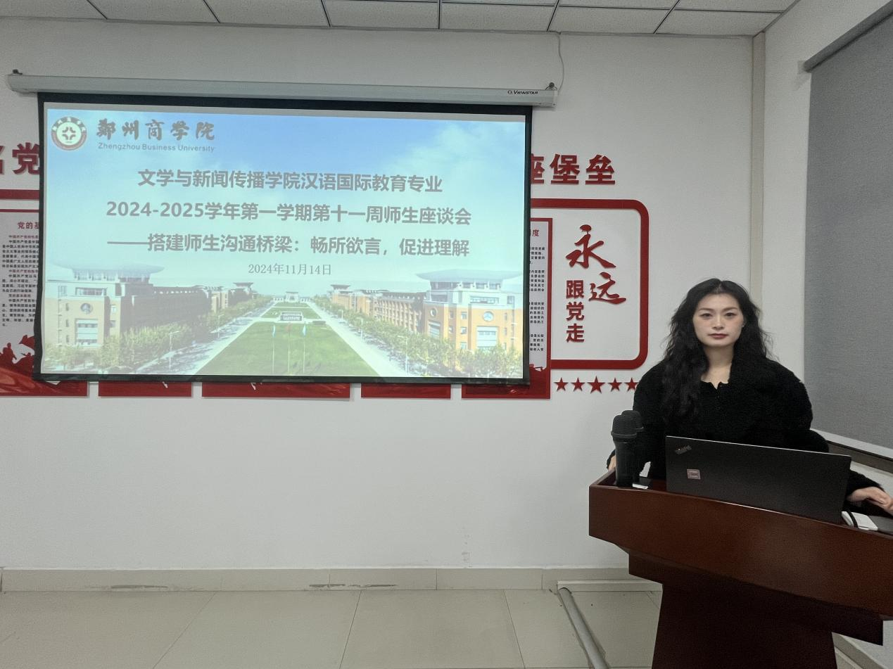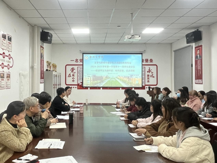 11月14日,文学与新闻传播学院在学院101会议室成功举办了汉语国际教育专业师生座谈会。座谈会主题为:搭建师生沟通桥梁——畅所欲言,促进理解,本次座谈会旨在加强师生之间的沟通交流,提升教学质量,推动汉语国际教育专业发展。