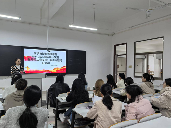 11月20日下午,文传学院教师第二党支部在H204开展11月份主题党日活动“学深悟透强党性,以学促干谋发展”。会上大家认真学习并研讨了习近平总书记在省部级领导干部学习贯彻党的二十届三中全会精神专题研讨班开班式上的重要讲话精神。