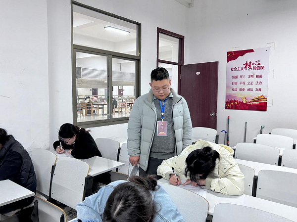 考试期间,我院党委书记贾蓓、校党办姜兴业老师和我院党委组织委员程斯佳老师在考场内进行巡查与监督,全体考生严守考风考纪,专心致志答题,展现出了良好的精神风貌。