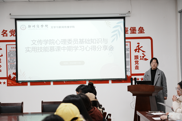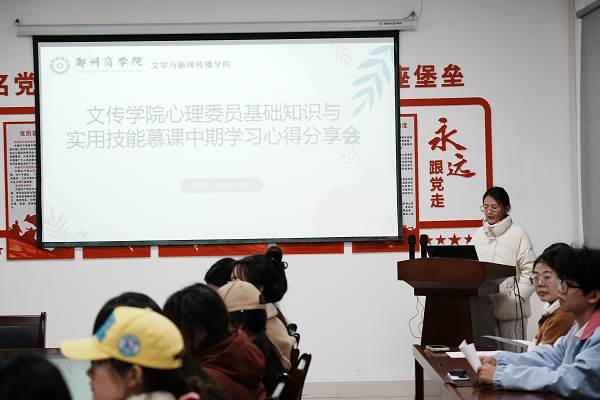 为进一步健全心理健康教育体系,增强心理委员慕课学习效果,帮助心理委员更好地了解自身职责,增强其责任意识和担当精神,明确工作目标,进而助力班级同学发现并解决心理问题,11月26日18:00文传学院组织召开2024级心理委员基础知识与实用技能慕课学习心得分享会。