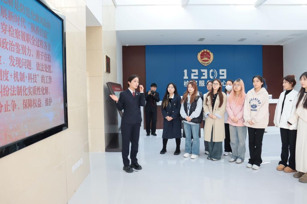 知识产权专业的学生在院长王松、法学教研室舒葳韧教授等带领下前往巩义市人民检察院进行实地观摩。巩义市人民检察院党组副书记、副检察长翟锐锋、巩义市人民检察院综合业务部主任马新战等对师生进行了热情接待。在检察院,学生见证了检察工作的严谨与高效,体会了检察院庄严而有序的工作环境,全面了解案件处理的精细流程。此次活动为他们日后的职业生涯积累了宝贵经验。