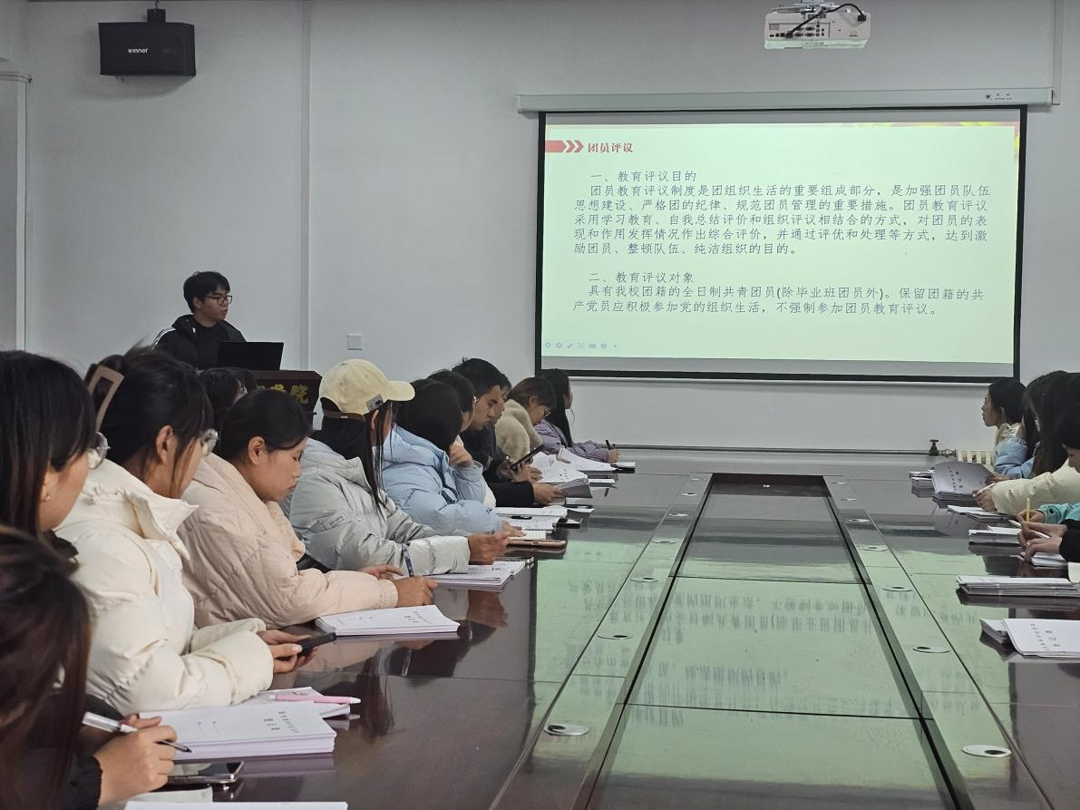 接着,组织部负责人李晨雨介绍了“星级团支部”评定的相关要求。她详细阐述了评定标准与流程,鼓励各团支部积极参与评定,不断提升自身建设水平。最后,由郑晓龙对评议工作进行了补充说明,并对团支书的具体工作任务做了安排指导。同时,就各团支书在团员教育评议过程中可能遇到的各种问题和疑惑,进行了详尽的解答。