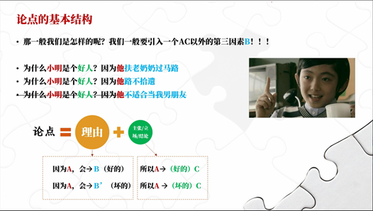 除了表达中语言的声音塑造技巧,论点阐述中还有一个更为重要的元素,就是“启发诱导”原则。“除了吐字清晰与否,我们为了将意思表达清楚,还应该在哪方面做出努力呢?”让学生体验被这种“诱导启发”式的提问问到的具体感受,感受其强大的吸引力和诱导性,并总结其特征,加入到自己的辩论稿中,提升辩论稿件的情绪感染力和吸引力。