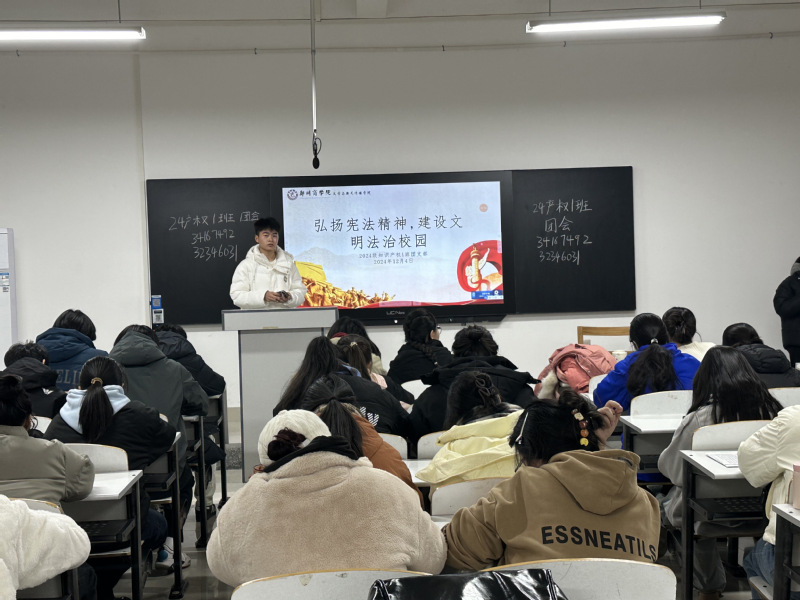 为弘扬宪法精神,维护宪法权威,增强我院学子的宪法意识,营造文明法治的校园氛围,我院于12月1日至12月5日组织各班级团支部开展“弘扬宪法精神,建设文明法治校园”主题团会。