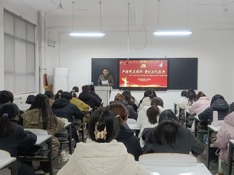 为深入学习党的二十大精神,全面贯彻落实新时代党的建设总要求,推进从严治党向纵深发展。2月21日,文传学院学生第二党支部于自力楼205教室召开专题理论学习会议,集中学习习近平总书记重要文章《健全全面从严治党体系》。会议由党支部书记牛道恒老师主持,学生第二党支部全体党员参加会议。