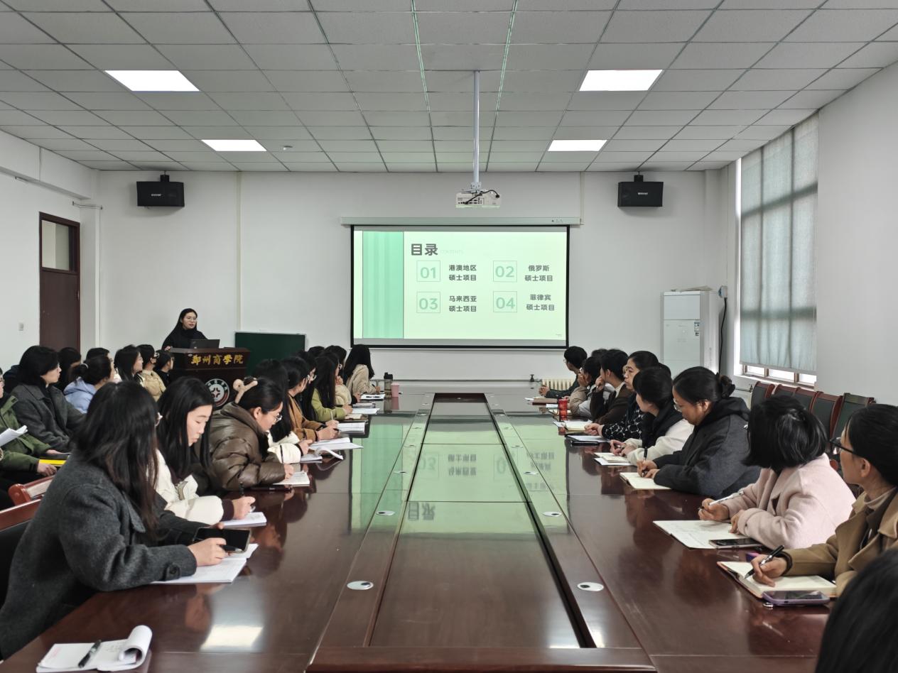 会议伊始,国际交流处文传学院负责老师刘露根据学生情况及各专业的特点,从申请条件、专业优势,到学制与学费、就业前景介绍推荐出国留学适配院校,为学生出国留学选择院校提供参考。